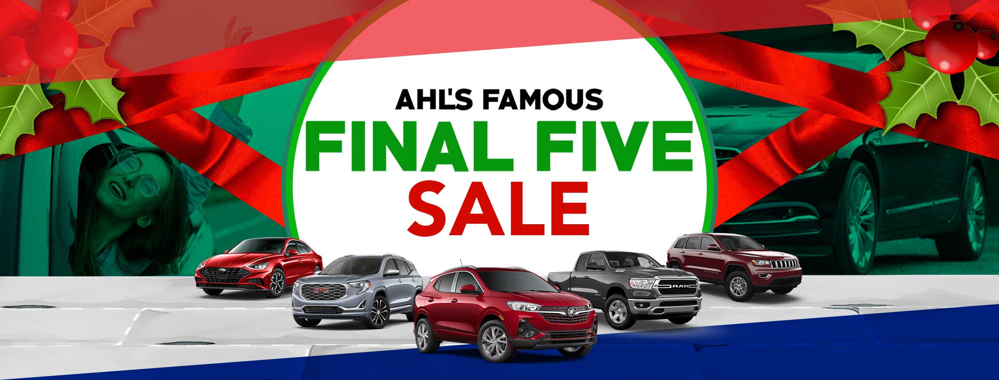 We wish you a very Merry Christmas and a Happy New Year! The last five days of the year - December 26 to December 31 - we host our annual Tom Ahl's Famous Five Sales Event, and this year we want to personally invite you to receive the best deals around. We want to clear our inventory out before the year-end and do so by offering our Lima community incredible savings. Let our friendly finance team put a deal together for you and your family to make it a Christmas to remember! We have an exciting selection of new Hyundai, Buick, Chrysler, Dodge, GMC, Jeep, and Ram models, in addition to a quality inventory of used cars, trucks, and SUVs by leaders in the automotive industry. What an amazing time to buy! Our Tom Ahl's Famous Final Five Sales Event makes shopping fun and easy. We love offering "Deals So Good They'll Knock Your Socks Off!" each year as a token of our appreciation. Plus, a new car for Christmas is a gift that keeps on giving all year round. Browse our inventory below and begin the new year in an exceptional new vehicle!