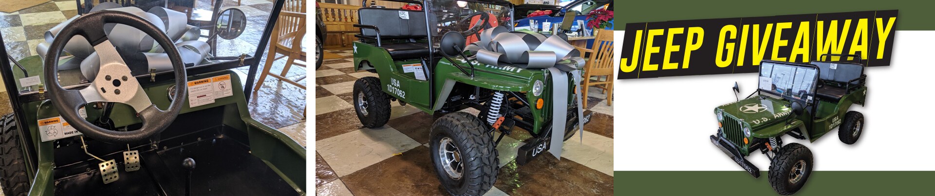 The Jeep brand embodies the ideals of unfettered freedom on the road and adventuring into the unknown, even when referring to a toy vehicle. The team at Tom Ahl Family of Dealerships recognizes that, which is why we are happy to announce that we are holding a holiday Mini Jeep giveaway from now until Monday, Dec. 23*. We will be drawing a name on Tuesday, Dec. 24 via Facebook Live to announce the winner. Proudly emblazoned with the iconic star of the U.S. Army, this Mini Jeep is gas-powered and has a 35cc motor that outputs up to a steady 30 MPH. It also features a fully-independent chain-driven suspension, alloy wheels, a sturdy metal frame, seat belts, and working headlights and taillights. The Tom Ahl staff thinks this toy ride will be the perfect Christmas gift for the outdoor explorer or Jeep fanatic in your life. So why wait? Be sure to fill out the form below for your chance to win an amazing Mini Jeep and celebrate the holiday season in style!