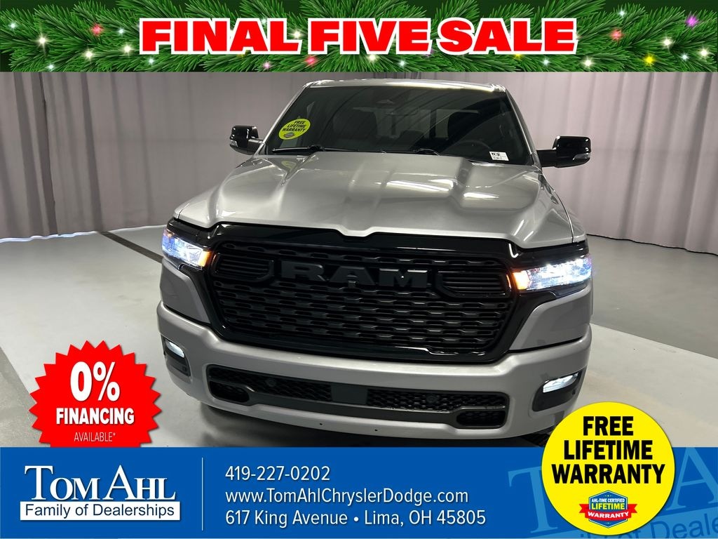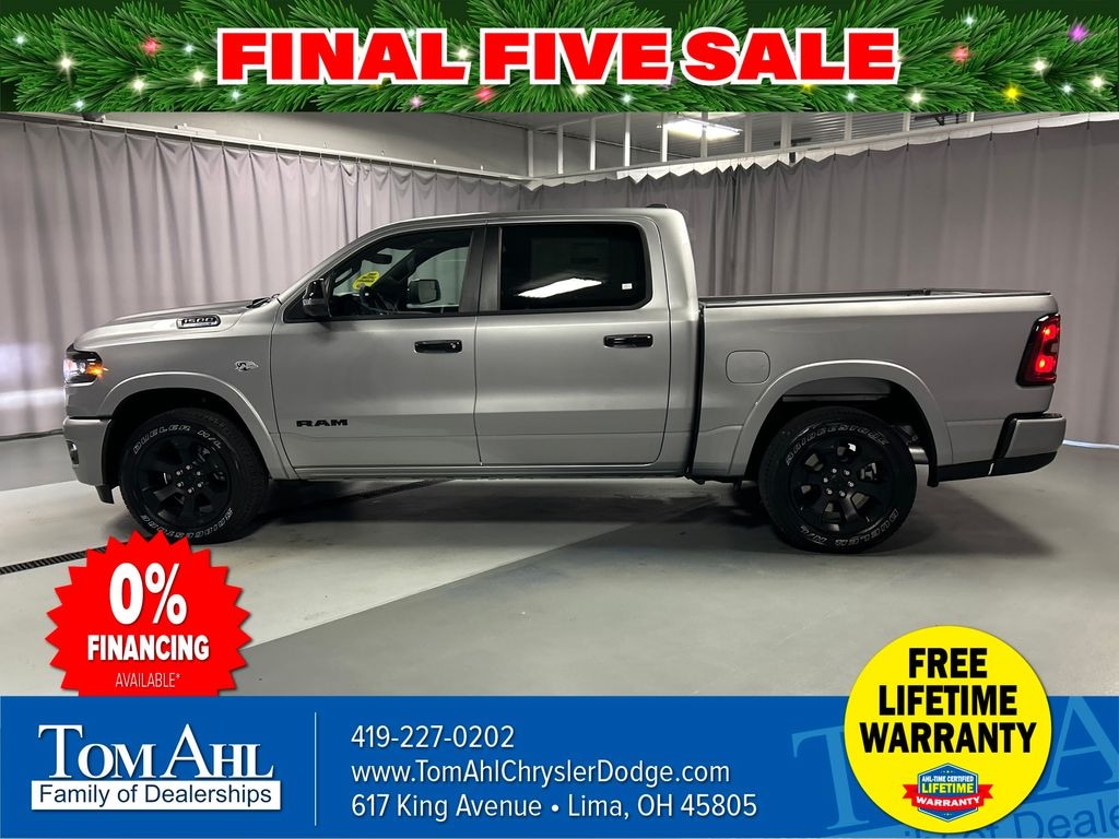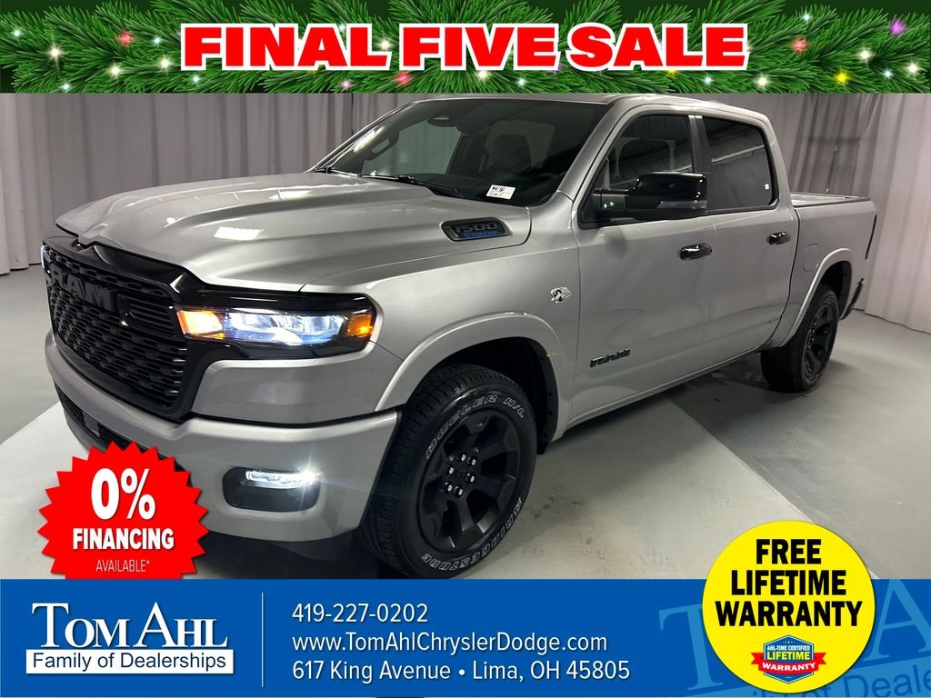 INCLUDES LIFETIME POWERTRAIN WARRANTY, 115V Auxiliary Power Outlet, 115V Auxiliary Rear Power Outlet, 12" Touchscreen Display, 3 Rear Seat Head Restraints, 4 Way Front Headrests, 400W Inverter, 4G LTE Wi-Fi Hot Spot, Accent Color Door Handles, Accent Color Premium Power Mirrors, Accent Color Tailgate Handle, Anti-Spin Differential Rear Axle, Apple CarPlay, Auto Power-Folding Mirrors, Auto-Dimming Exterior Driver Mirror, Auto-Dimming Rear-View Mirror, Big Horn Level 2 Equipment Group, Black Exterior Mirrors, Black Exterior Truck Badging, Black Headlamp Bezels, Black Interior Accents, Black Painted Exterior Mirrors Caps, Black Premium Power Mirrors, Black Tail Lamp Bezels, Body Color Fender Flares, Body Color Front Bumper, Bucket Seats, Center Console Parts Module, Cluster 7.0" TFT Color Display, Configurable Drive Mode, Connectivity - US/Canada, Convex Wide-Angle Exterior Mirror Insert, Deluxe Cloth Bucket Seats, Disassociated Touchscreen Display, Exterior Mirrors Courtesy Lamps, Front Seat Back Map Pockets, Full Length Floor Console, Glove Box Lamp, Google Android Auto, GPS Antenna Input, GPS Navigation, Grille Black Surround Black Mesh, HD Radio, Heated Front Seats, Heated Steering Wheel, Integrated Center Stack Radio, Leather Wrapped Steering Wheel, LED Footwell Lighting, Manual Adjust 4-Way Front Passenger Seat, Night Edition, Overhead LED Lamps, Power 2-Way Driver Lumbar Adjust, Power Adjust 8-Way Driver Seat, Power Adjustable Pedals, Premium Overhead Console, Quick Order Package 27Z Big Horn, RAM Grille Badge - Black, Rear 60/40 Folding Seat, Rear Center Armrest, Rear Power Sliding Window, Rear Window Defroster, Remote Tailgate Release, Security Alarm, SiriusXM Radio Service, Steering Wheel Mounted Audio Controls, Universal Garage Door Opener, USB Host Flip, Wheels: 20" x 9.0" Aluminum Painted Clad. Price includes: $3500 - 2026 National Retail Consumer Cash . Exp. 01/05/2026