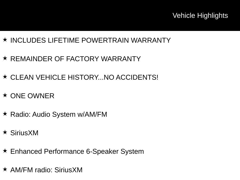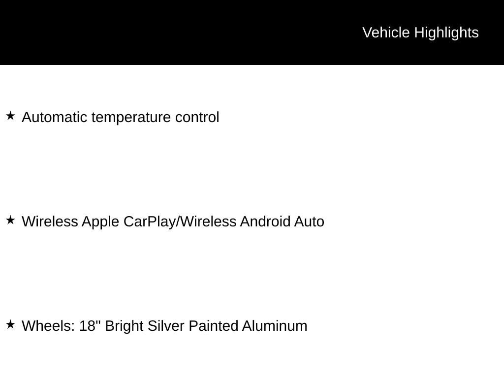 INCLUDES LIFETIME POWERTRAIN WARRANTY, REMAINDER OF FACTORY WARRANTY, CLEAN VEHICLE HISTORY...NO ACCIDENTS!, ONE OWNER, AM/FM radio: SiriusXM, Automatic temperature control, Enhanced Performance 6-Speaker System, Radio: Audio System w/AM/FM, SiriusXM, Wheels: 18 Bright Silver Painted Aluminum, Wireless Apple CarPlay/Wireless Android Auto.