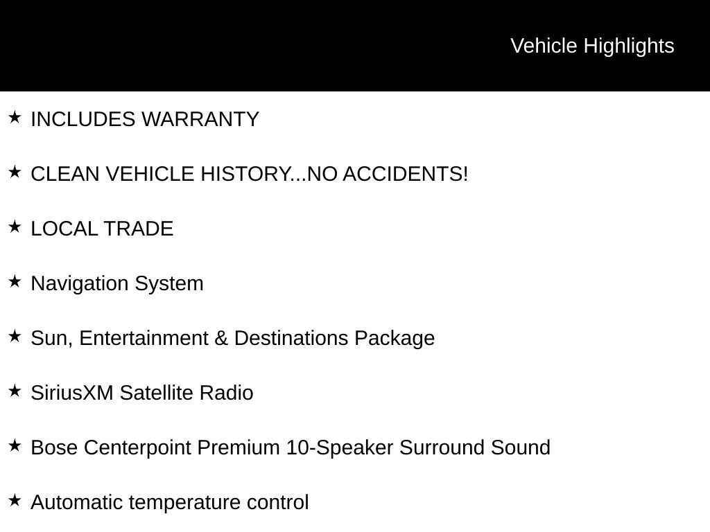 INCLUDES WARRANTY, CLEAN VEHICLE HISTORY...NO ACCIDENTS!, LOCAL TRADE, 4WD, Automatic temperature control, Bluetooth® For Phone, Bose Centerpoint Premium 10-Speaker Surround Sound, Exterior Parking Camera Rear, Heated & Cooled Driver & Front Passenger Seats, Navigation System, Perforated Leather-Appointed Seat Trim, Power Liftgate, Power Sunroof, Rear Seat Blu-Ray/DVD Entertainment System, SiriusXM Satellite Radio, Sun, Entertainment & Destinations Package, Ventilated front seats, Wheels: 22 Premium Painted w/Chrome Inserts.