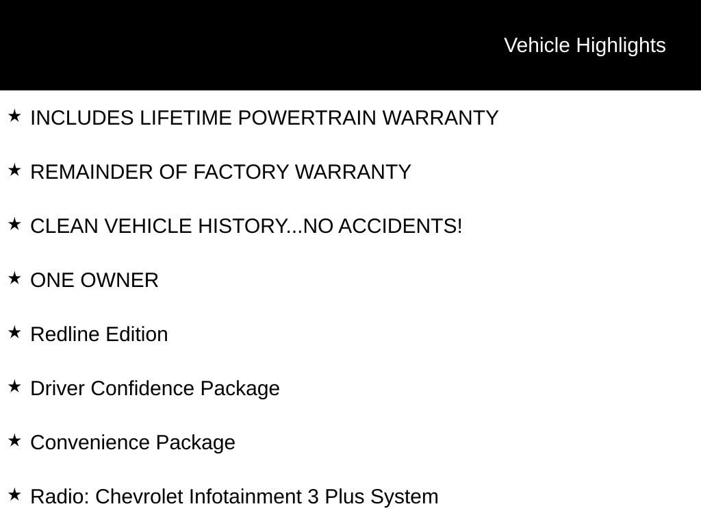 INCLUDES LIFETIME POWERTRAIN WARRANTY, REMAINDER OF FACTORY WARRANTY, CLEAN VEHICLE HISTORY...NO ACCIDENTS!, ONE OWNER, 6-Speaker Audio System Feature, 8-Way Power Driver Seat Adjuster, Adaptive Cruise Control, Automatic temperature control, Black Roof-Mounted Side Rails, Black w/Red Outline Blazer Badges, Convenience Package, Driver Confidence Package, Enhanced Automatic Emergency Braking, Front & Rear Black Bowties, Heated Driver & Front Passenger Seats, Inside Rear-View Auto-Dimming Mirror, Lane Change Alert w/Side Blind Zone Alert, Radio: Chevrolet Infotainment 3 Plus System, Rear Cross Traffic Alert, Rear Park Assist w/Audible Warning, Rear Power Programmable Liftgate, Redline Decals (LPO), Redline Edition, SiriusXM w/360L, Wheels: 20 Gloss Black Painted Alum w/Red Accents, Wireless Charging.Recent Arrival! 22/29 City/Highway MPGFor over 50 years, Tom Ahl has been committed to earning your business, trust and friendship by providing you with the greatest value in a vehicle for the lowest cost to you. We offer full disclosure with every vehicle by providing a complimentary Autocheck vehicle history report and a copy of repairs made following our extensive 72 point inspection. For a deal so good it'll knock your socks off, visit Tom Ahl's today!