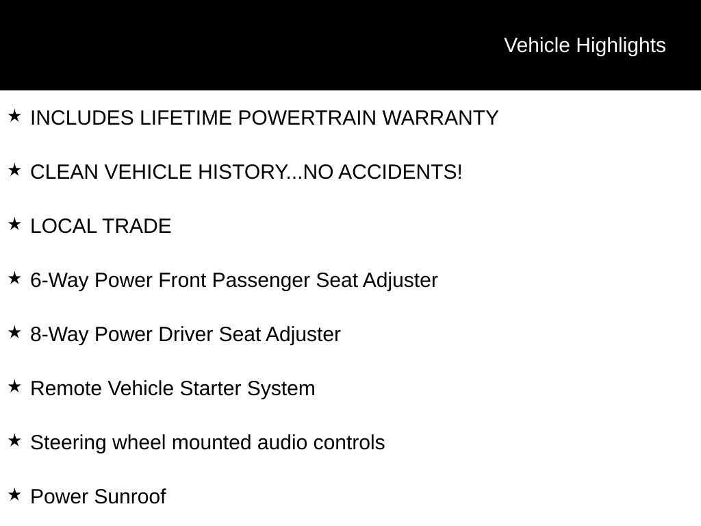 INCLUDES LIFETIME POWERTRAIN WARRANTY, CLEAN VEHICLE HISTORY...NO ACCIDENTS!, LOCAL TRADE, 6-Way Power Front Passenger Seat Adjuster, 8-Way Power Driver Seat Adjuster, Exterior Parking Camera Rear, Paddle-Shift Manual Controls, Power Sunroof, Remote Vehicle Starter System, Steering wheel mounted audio controls.Recent Arrival! 16/26 City/Highway MPGFor over 50 years, Tom Ahl has been committed to earning your business, trust and friendship by providing you with the greatest value in a vehicle for the lowest cost to you. We offer full disclosure with every vehicle by providing a complimentary Autocheck vehicle history report and a copy of repairs made following our extensive 72 point inspection. For a deal so good it'll knock your socks off, visit Tom Ahl's today!