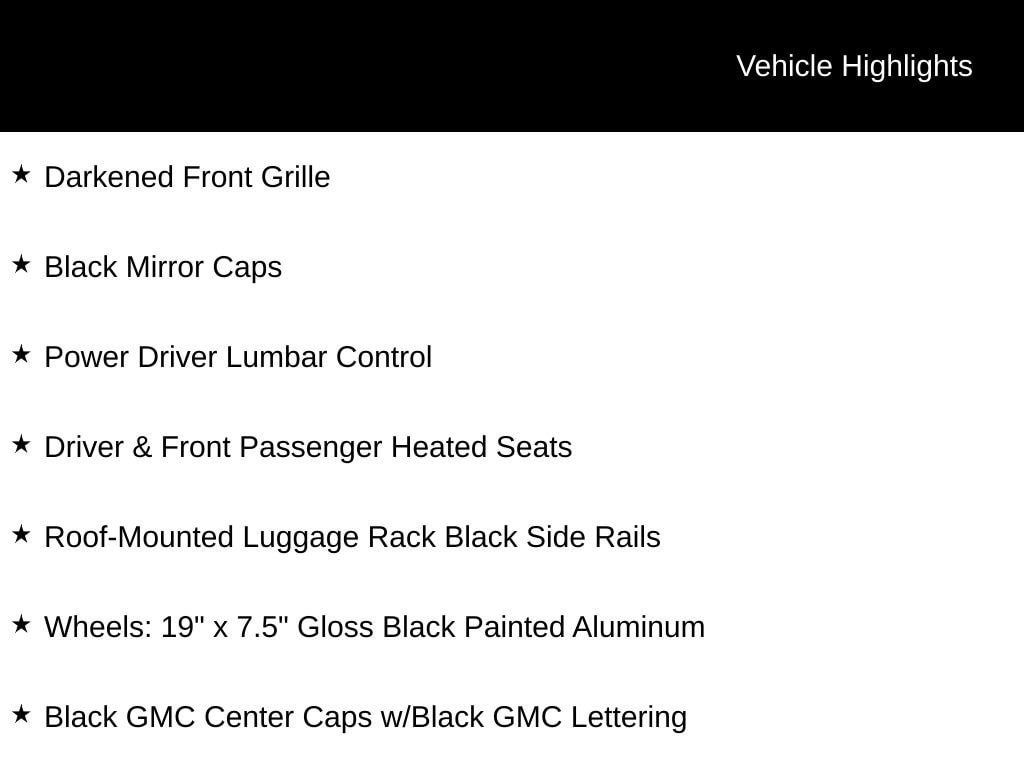 INCLUDES WARRANTY, LOCAL TRADE, 8-Way Power Driver Seat Adjuster, Black Edition, Black GMC Center Caps w/Black GMC Lettering, Black Mirror Caps, Darkened Front Grille, Driver & Front Passenger Heated Seats, Driver Convenience Package, Dual-Zone Automatic Climate Control, Power Driver Lumbar Control, Preferred Equipment Group 3SA, Remote Start, Roof-Mounted Luggage Rack Black Side Rails, Wheels: 19 x 7.5 Gloss Black Painted Aluminum.Recent Arrival! 26/30 City/Highway MPG Odometer is 18648 miles below market average!For over 50 years, Tom Ahl has been committed to earning your business, trust and friendship by providing you with the greatest value in a vehicle for the lowest cost to you. We offer full disclosure with every vehicle by providing a complimentary Autocheck vehicle history report and a copy of repairs made following our extensive 72 point inspection. For a deal so good it'll knock your socks off, visit Tom Ahl's today!