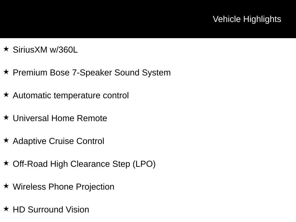 Prices shown are manufacturer suggested retail prices only and do not include taxes, license, or doc fee. Manufacturer vehicle accessory costs, labor and installation vary. Please contact us with any questions.