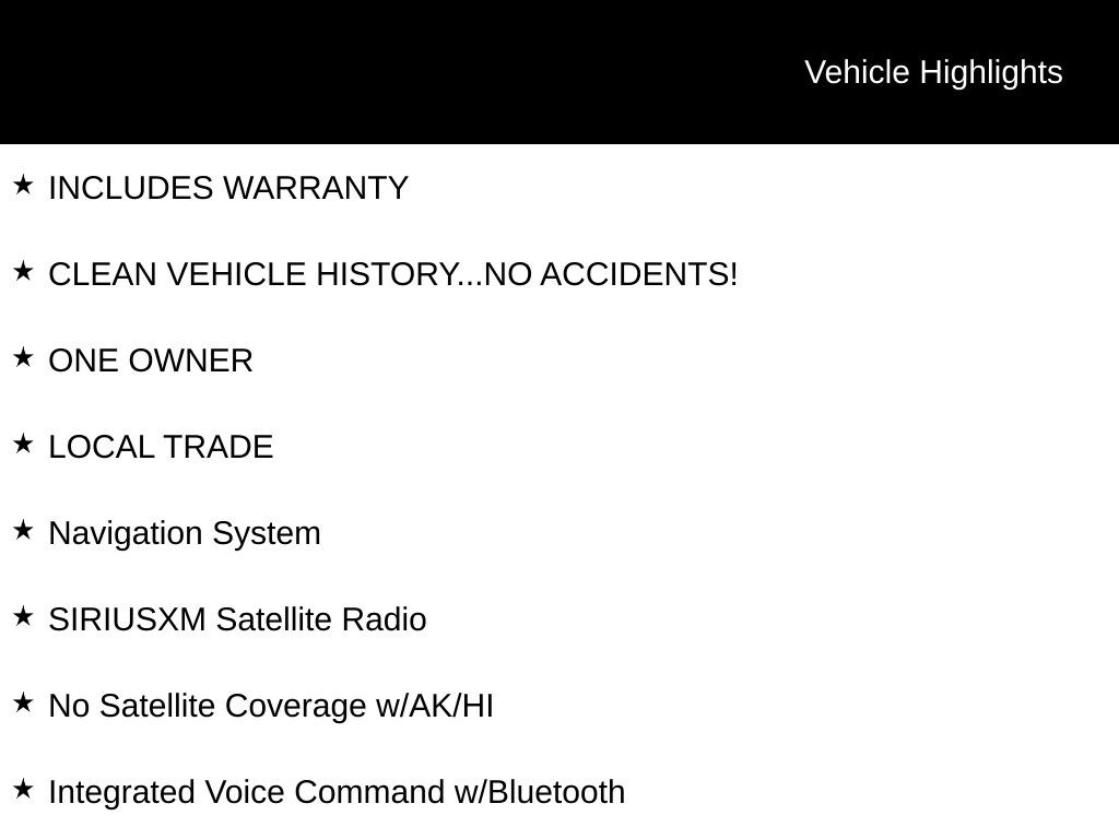 Priced below KBB Fair Purchase Price! INCLUDES WARRANTY, CLEAN VEHICLE HISTORY...NO ACCIDENTS!, ONE OWNER, LOCAL TRADE, 3.2L V6, 4WD, Integrated Voice Command w/Bluetooth, Navigation System, No Satellite Coverage w/AK/HI, ParkView Rear Back-Up Camera, SIRIUSXM Satellite Radio.