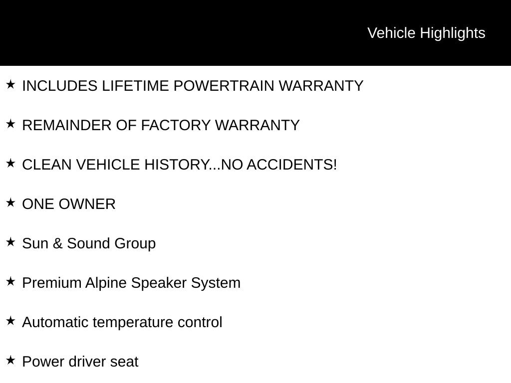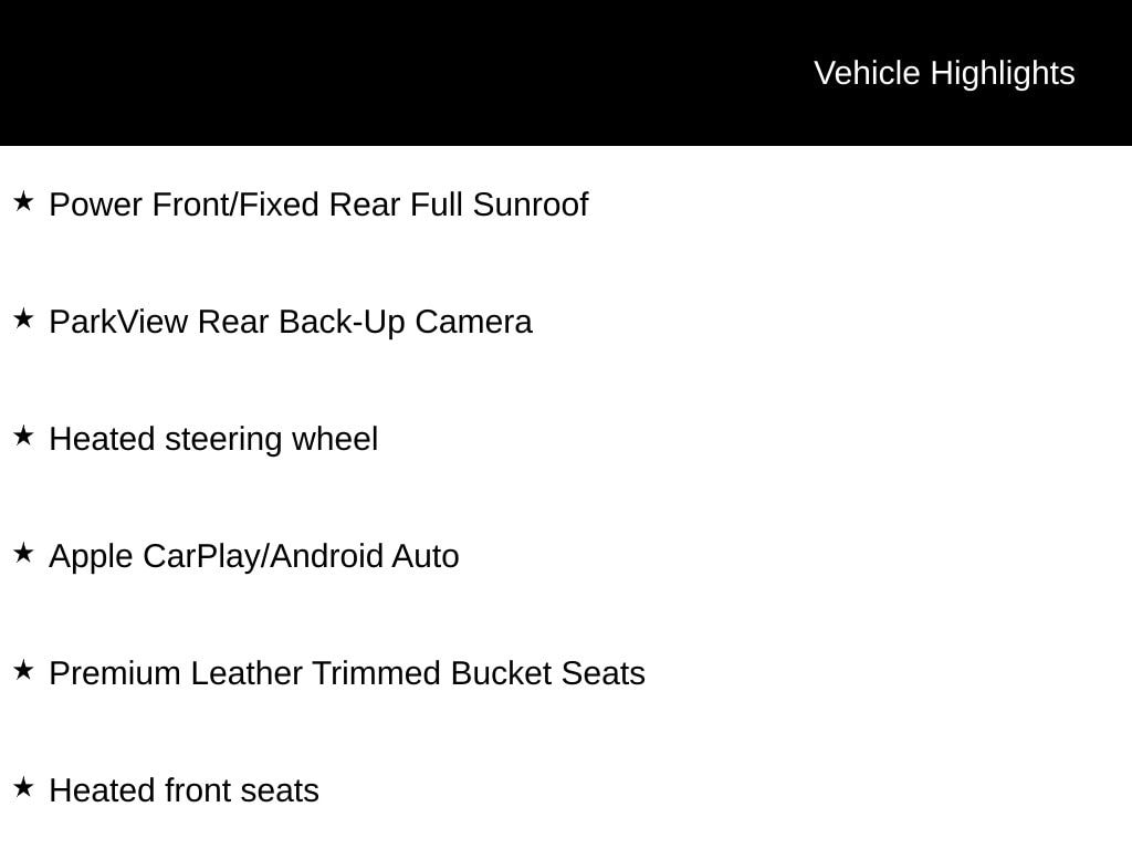 INCLUDES LIFETIME POWERTRAIN WARRANTY, REMAINDER OF FACTORY WARRANTY, CLEAN VEHICLE HISTORY...NO ACCIDENTS!, ONE OWNER, 4WD, Apple CarPlay/Android Auto, Automatic temperature control, Heated front seats, Heated steering wheel, ParkView Rear Back-Up Camera, Power driver seat, Power Front/Fixed Rear Full Sunroof, Premium Alpine Speaker System, Premium Leather Trimmed Bucket Seats, Sun & Sound Group.