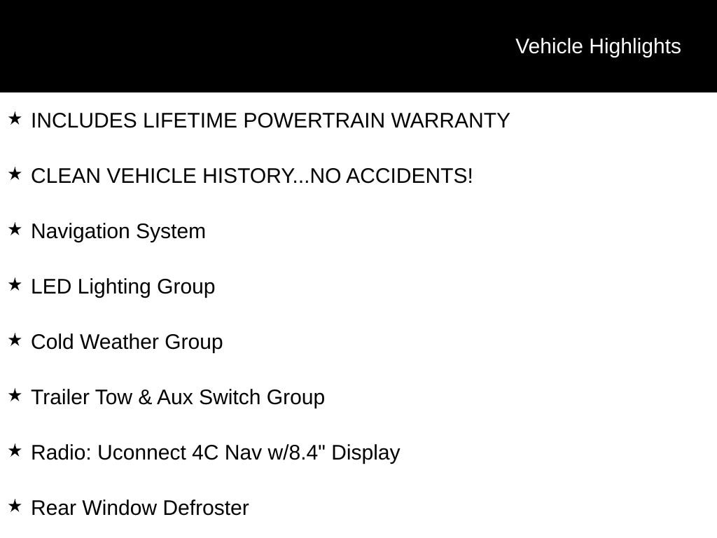 INCLUDES LIFETIME POWERTRAIN WARRANTY, CLEAN VEHICLE HISTORY...NO ACCIDENTS!, 3.6L V6 24V VVT, 4WD, 7 & 4 Pin Wiring Harness, Apple CarPlay/Android Auto, Automatic temperature control, Auxiliary Switches, Black 3-Piece Hard Top, Class II Receiver Hitch, Cold Weather Group, Daytime Running Lamps LED Accents, Freedom Panel Storage Bag, Front LED Fog Lamps, Heated Front Seats, Heated Steering Wheel, LED Lighting Group, LED Premium Reflector Headlamps, LED Taillamps, Navigation System, No Soft Top, ParkView Rear Back-Up Camera, Radio: Uconnect 4C Nav w/8.4" Display, Rear Window Defroster, Rear Window Wiper/Washer, Trailer Tow & Aux Switch Group, Wheels: 17" x 7.5" Machined/Painted Black.