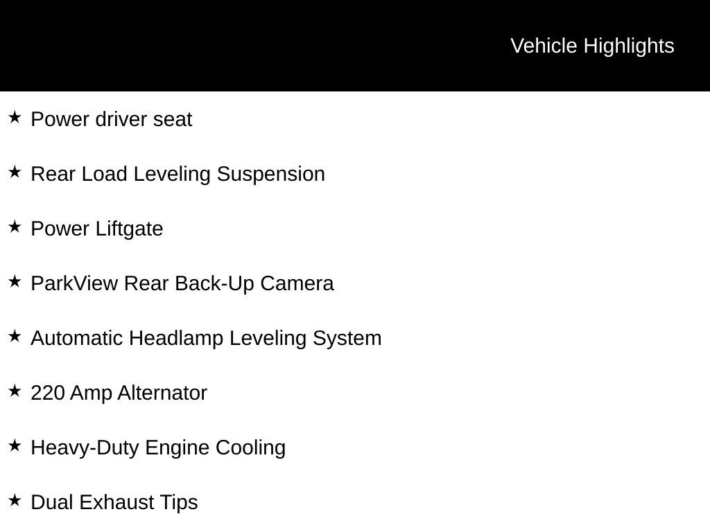 INCLUDES LIFETIME POWERTRAIN WARRANTY, REMAINDER OF FACTORY WARRANTY, CLEAN VEHICLE HISTORY...NO ACCIDENTS!, ONE OWNER, 4WD, 220 Amp Alternator, 3rd row seats: split-bench, 7 & 4 Pin Wiring Harness, AM/FM radio: SiriusXM with 360L, Automatic Headlamp Leveling System, Automatic temperature control, Capri Leatherette Seats, Class IV Receiver Hitch, Dual Exhaust Tips, Heated front seats, Heated rear seats, Heated steering wheel, Heavy-Duty Engine Cooling, Navigation System, ParkView Rear Back-Up Camera, Power driver seat, Power Liftgate, Rear Load Leveling Suspension, Trailer Hitch Zoom, Trailer Tow Package, Wheels: 18" x 8.0" Polished/Painted Aluminum.