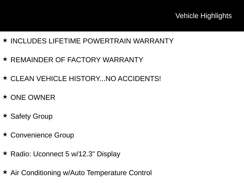 INCLUDES LIFETIME POWERTRAIN WARRANTY, REMAINDER OF FACTORY WARRANTY, CLEAN VEHICLE HISTORY...NO ACCIDENTS!, ONE OWNER, 3.6L V6 24V VVT, 4WD, Air Conditioning w/Auto Temperature Control, Apple CarPlay/Android Auto, Auto High Beam Headlamp Control, Black 3-Piece Hard Top, Blind Spot & Cross Path Detection, Convenience Group, Freedom Panel Storage Bag, Heated Front Seats, Heated Steering Wheel, LED Taillamps, Mopar Black Tubular Side Steps, No Soft Top, ParkSense Rear Park Assist System, Radio: Uconnect 5 w/12.3" Display, Rear Window Wiper/Washer, Remote Start System, Safety Group, Wheels: 17" x 7.5" Gray.
