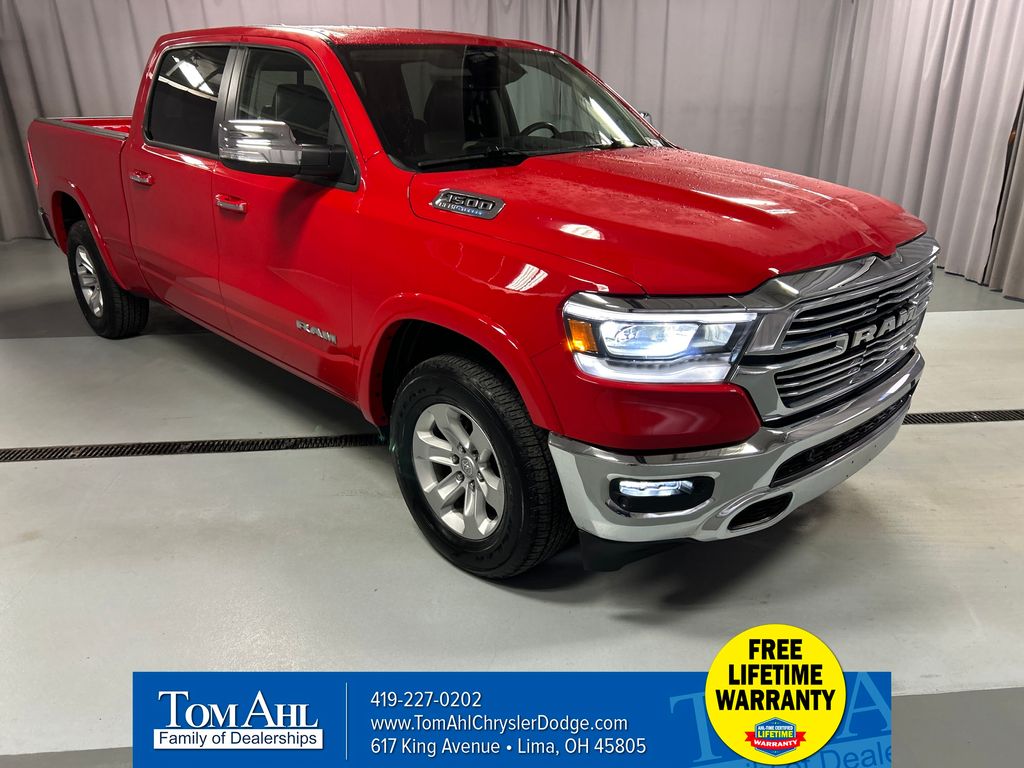 INCLUDES LIFETIME POWERTRAIN WARRANTY, REMAINDER OF FACTORY WARRANTY, CLEAN VEHICLE HISTORY...NO ACCIDENTS!, ONE OWNER, 4D Crew Cab, HEMI 5.7L V8 Multi Displacement VVT, 4WD, 2nd Row In Floor Storage Bins, 8.4" Touchscreen Display Radio, Apple CarPlay, Auto High Beam Headlamp Control, Automatic temperature control, Blind Spot & Cross Path Detection, Google Android Auto, harman/kardon 19 Speaker Premium Sound, Heated Front Seats, Integrated Voice Command w/Bluetooth, Laramie Level II Equipment Group, Leather Trim 40/20/40 Bench Seat, Navigation System, ParkSense Front/Rear Park Assist w/Stop, ParkView Rear Back-Up Camera, Power 8-Way Driver & Passenger Seats, Radio: Uconnect 5 Nav w/8.4" Display, Rain Sensitive Windshield Wipers, Remote Tailgate Release, SiriusXM w/360L, Ventilated Front Seats, Wheels: 18" x 8" Aluminum Base Painted, Wireless Charging Pad.